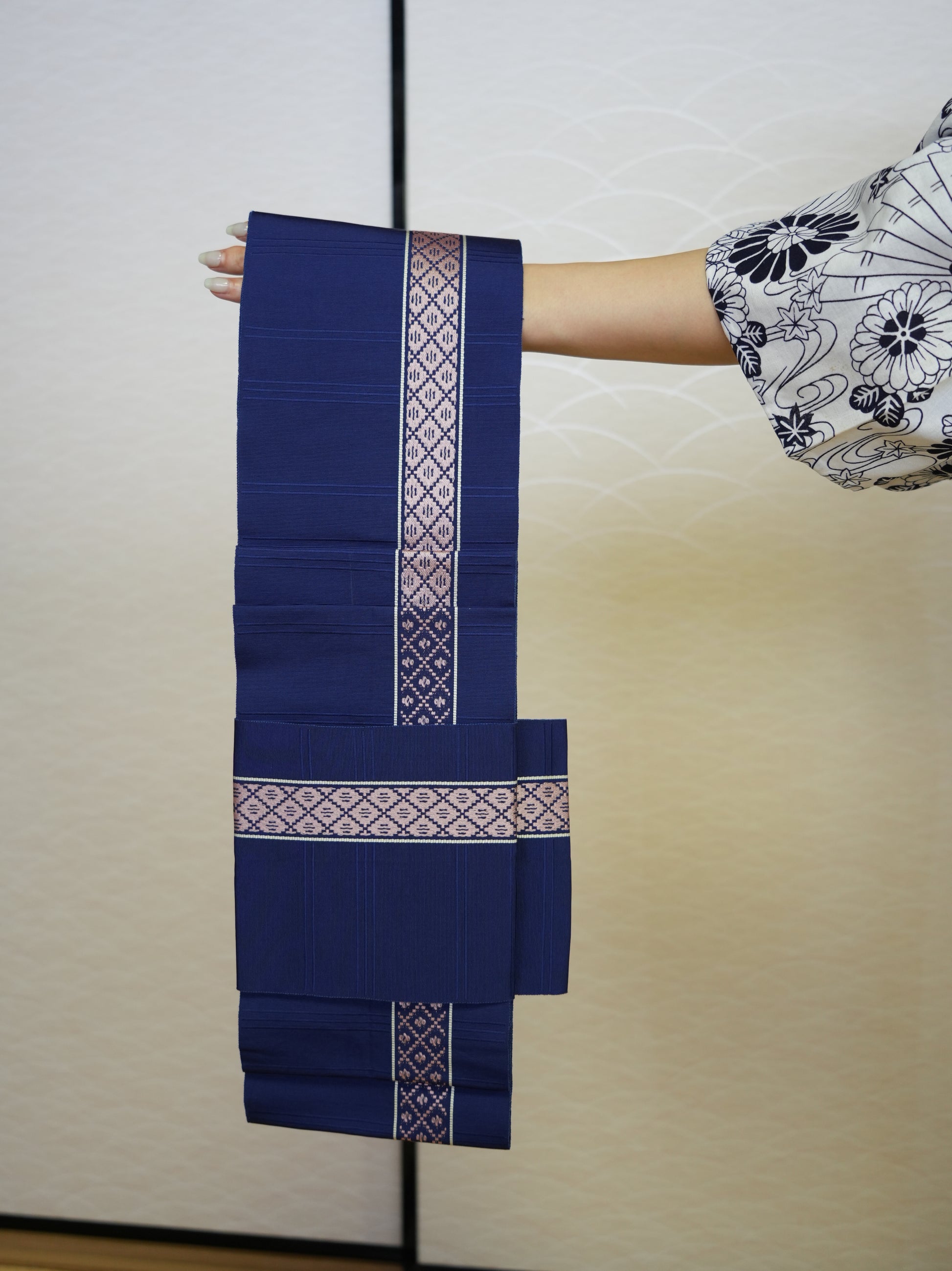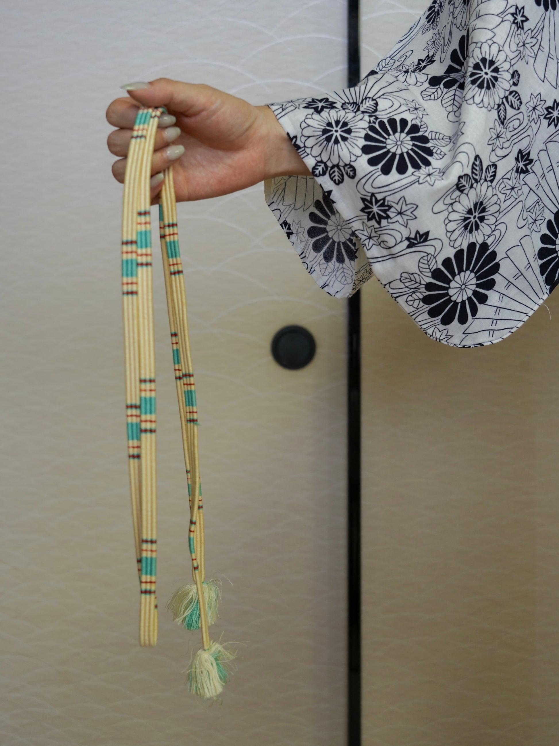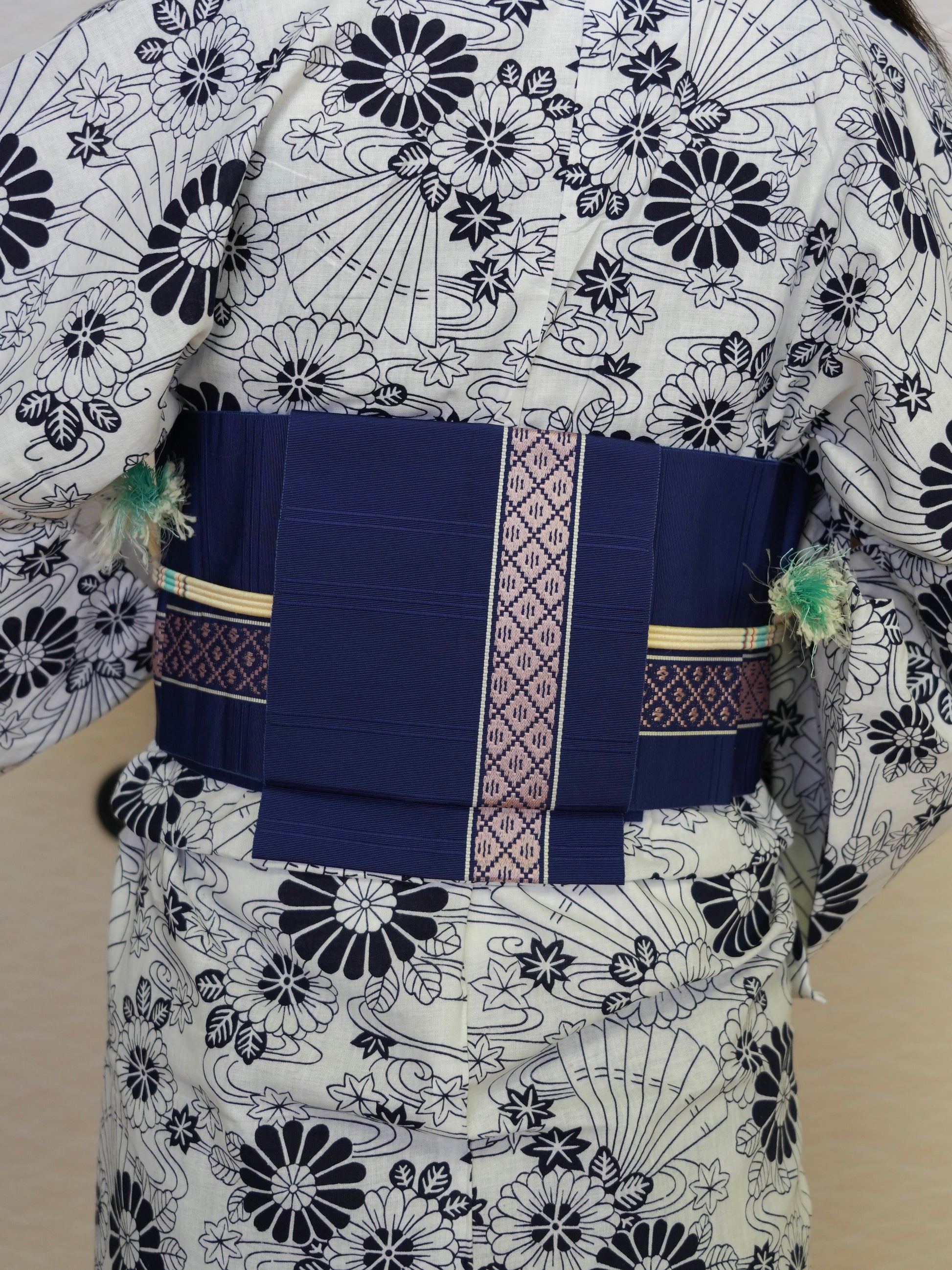 1分で装える、ビンテージの半幅帯を使用した作り帯。