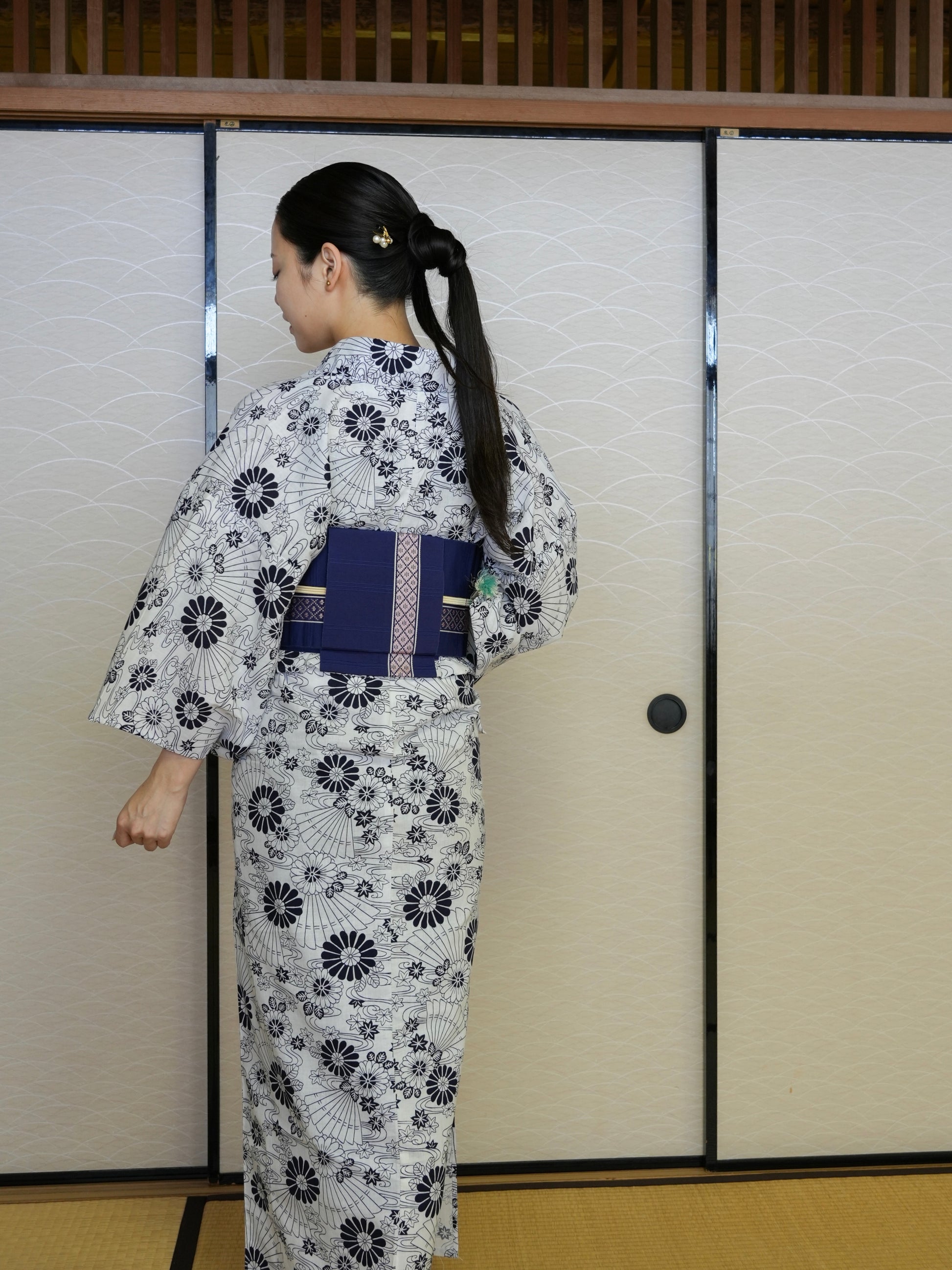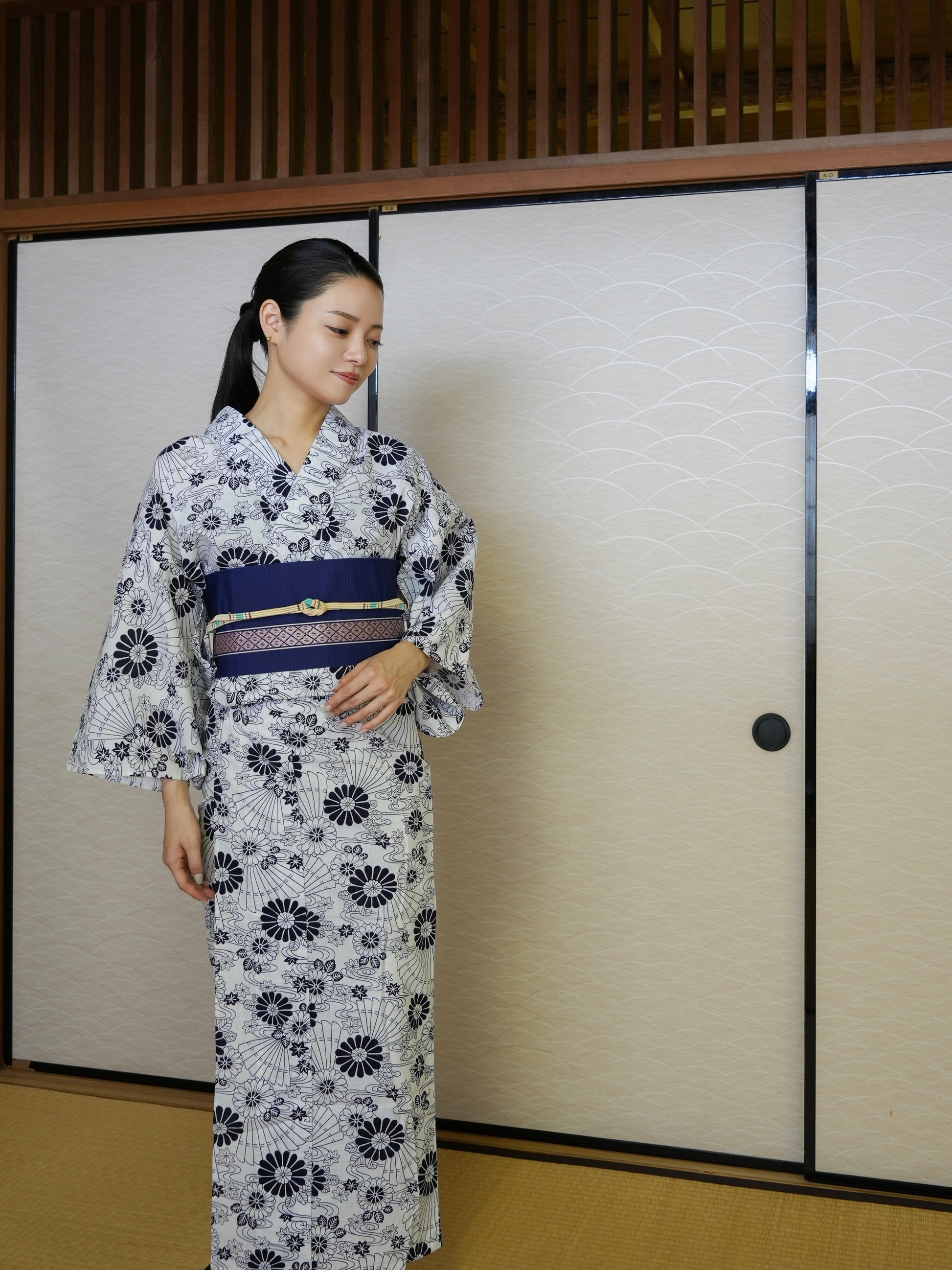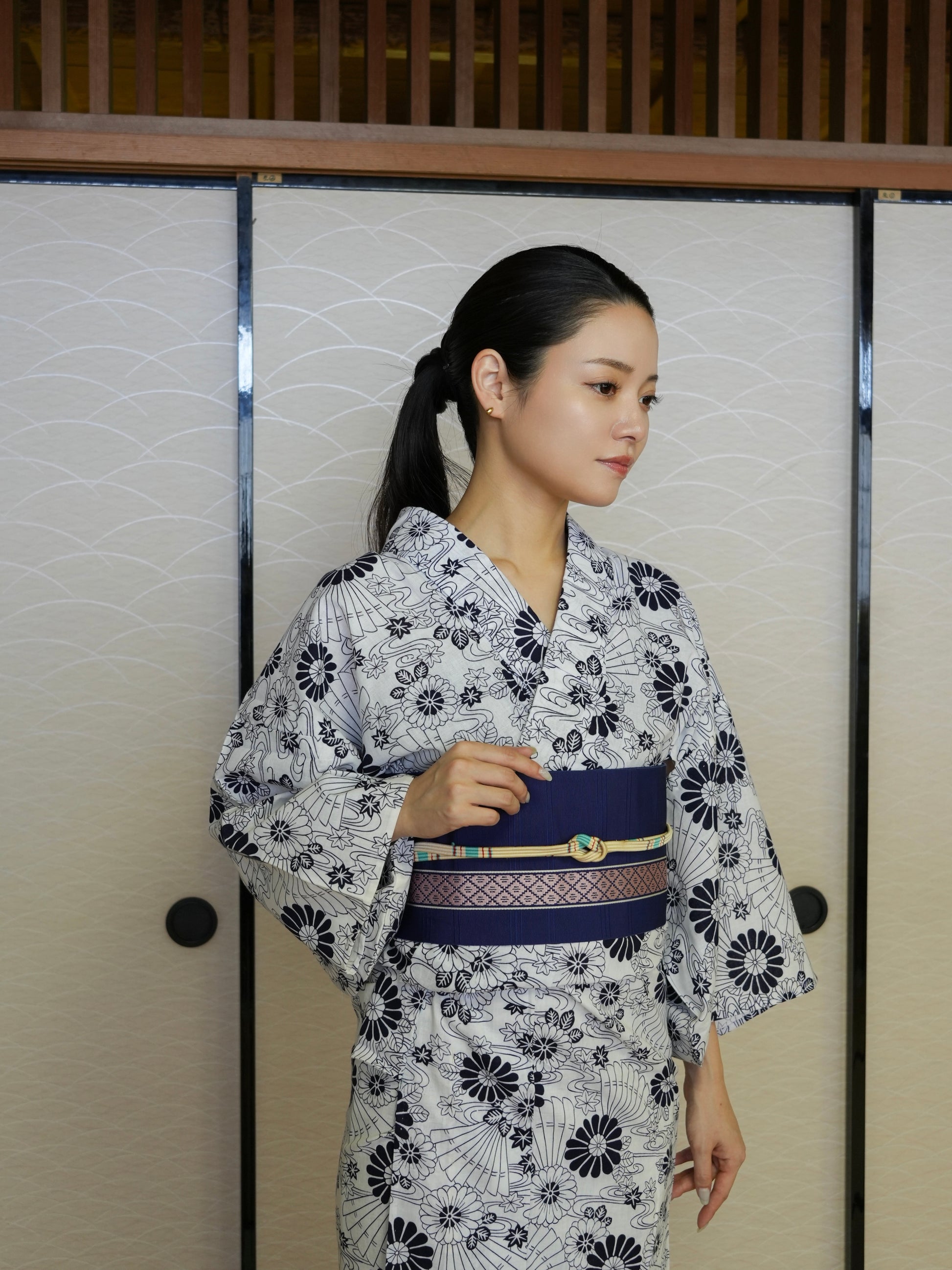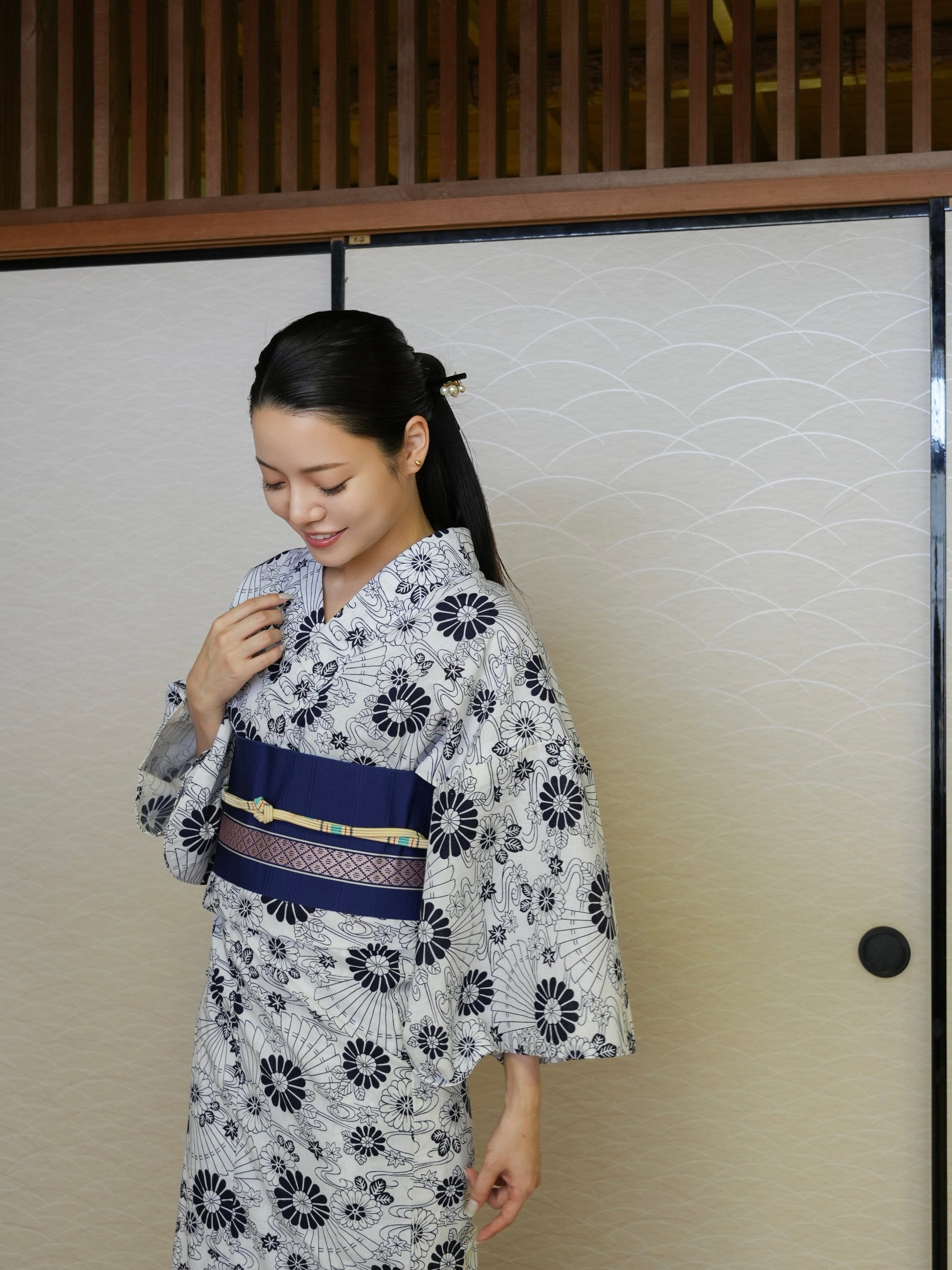 また、長襦袢を重ねることで、室内のイベントやよりフォーマルな和装シーンでも、浴衣から着物としてお楽しみいただけます。