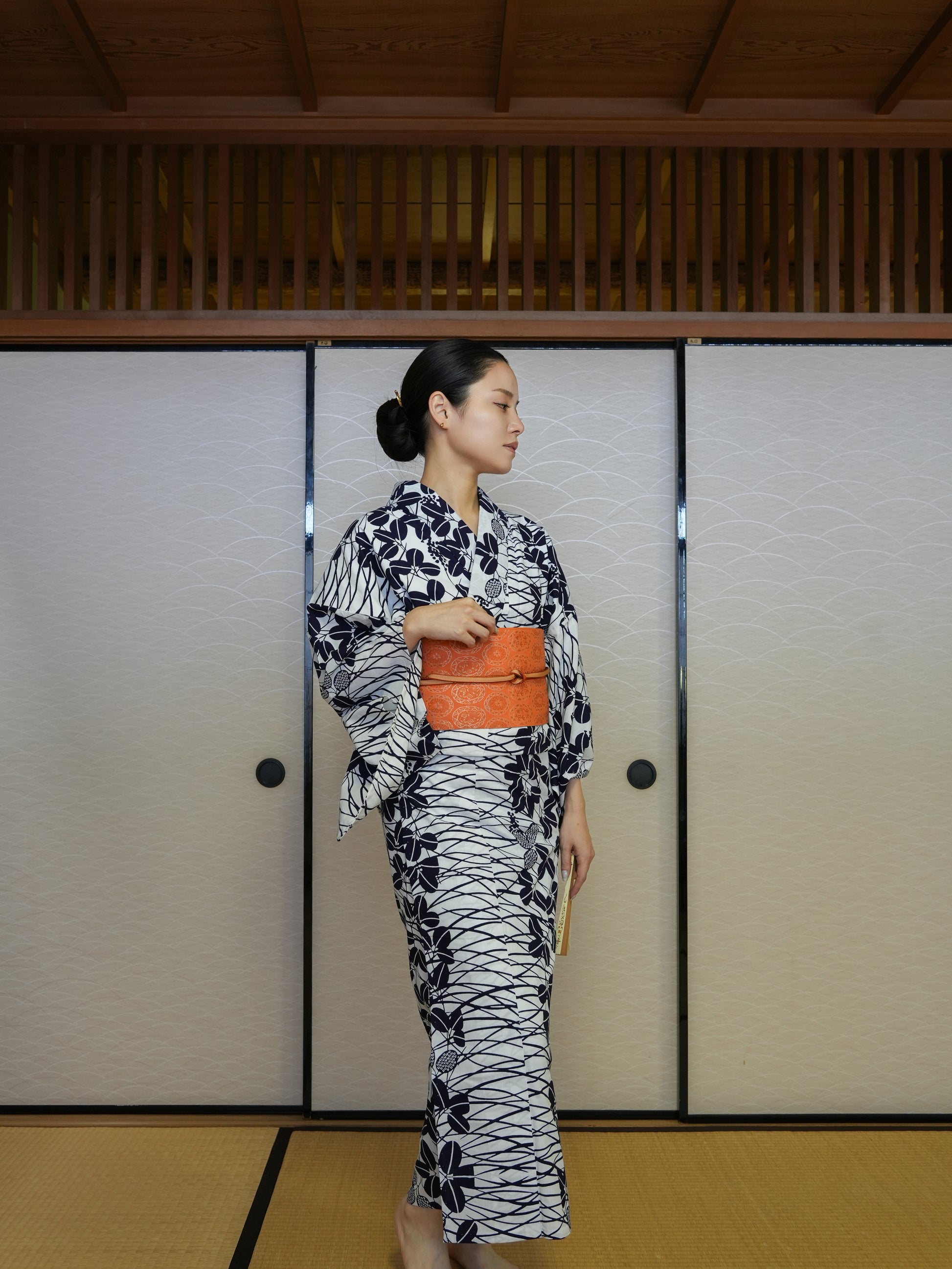 着物コーディネーターがコーディネートした、大人のための浴衣3点セットで、届いてすぐに、完成された着姿をお楽しみいただけます。