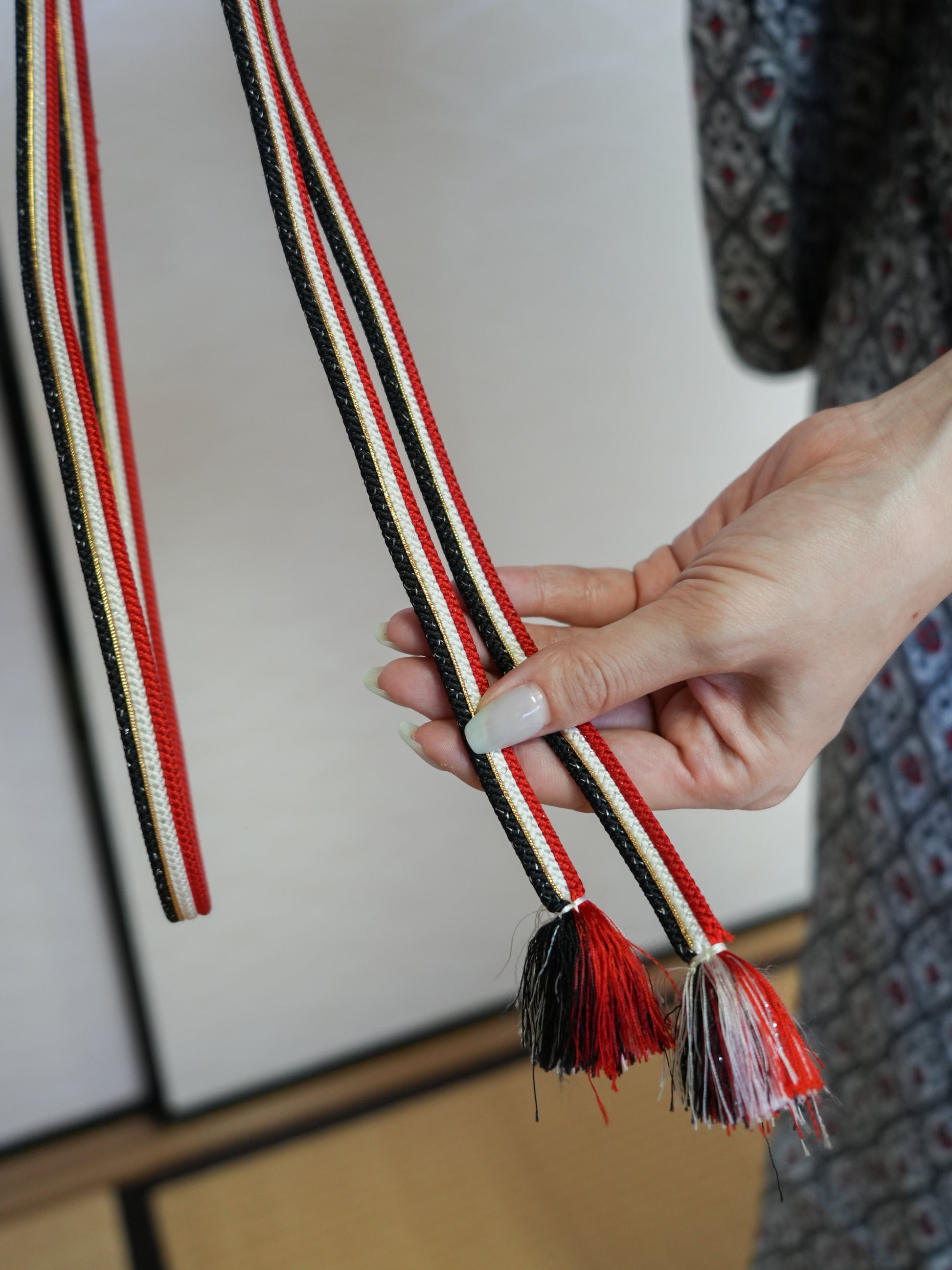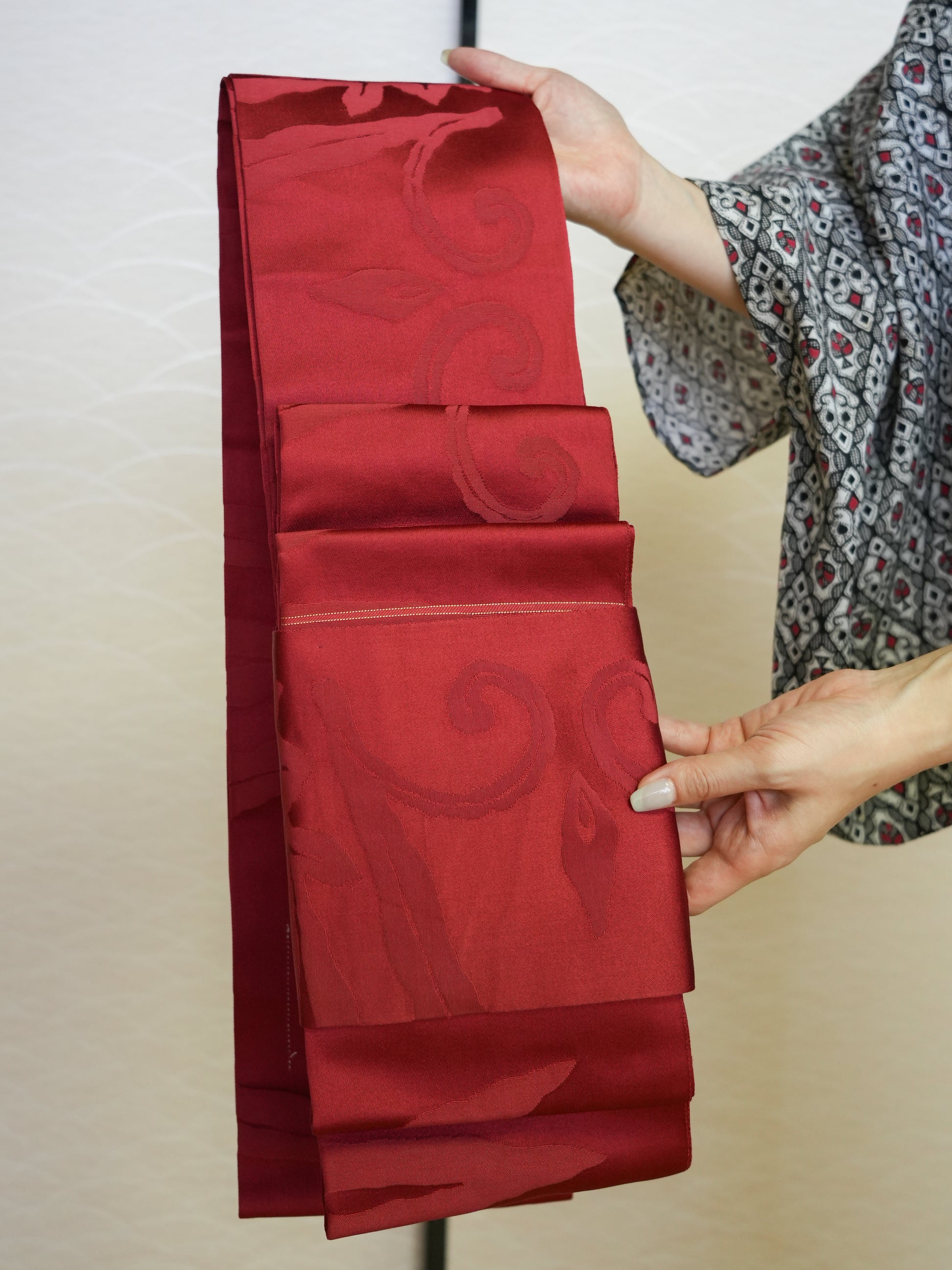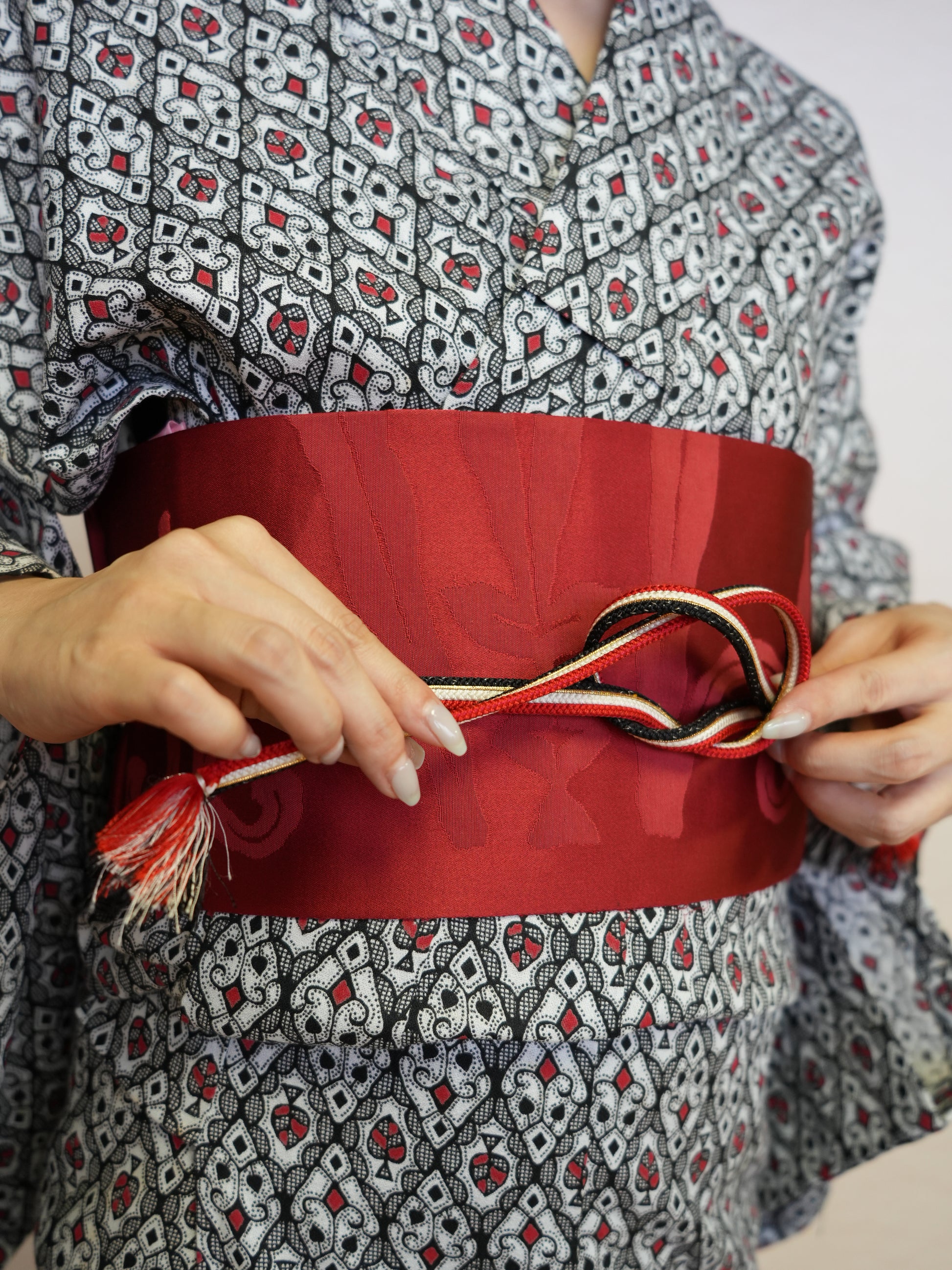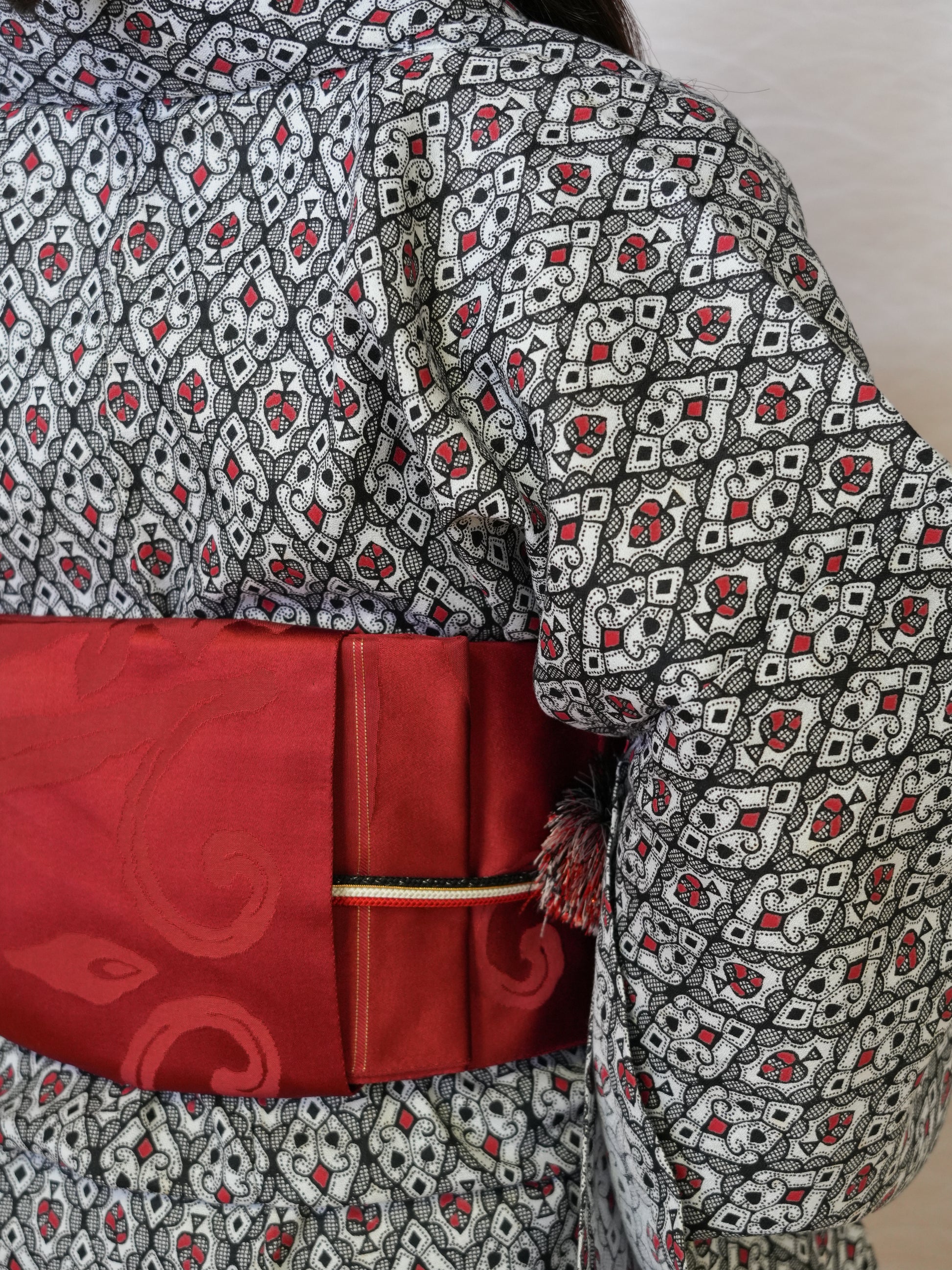 1分で装える、ビンテージの半幅帯を使用した作り帯。