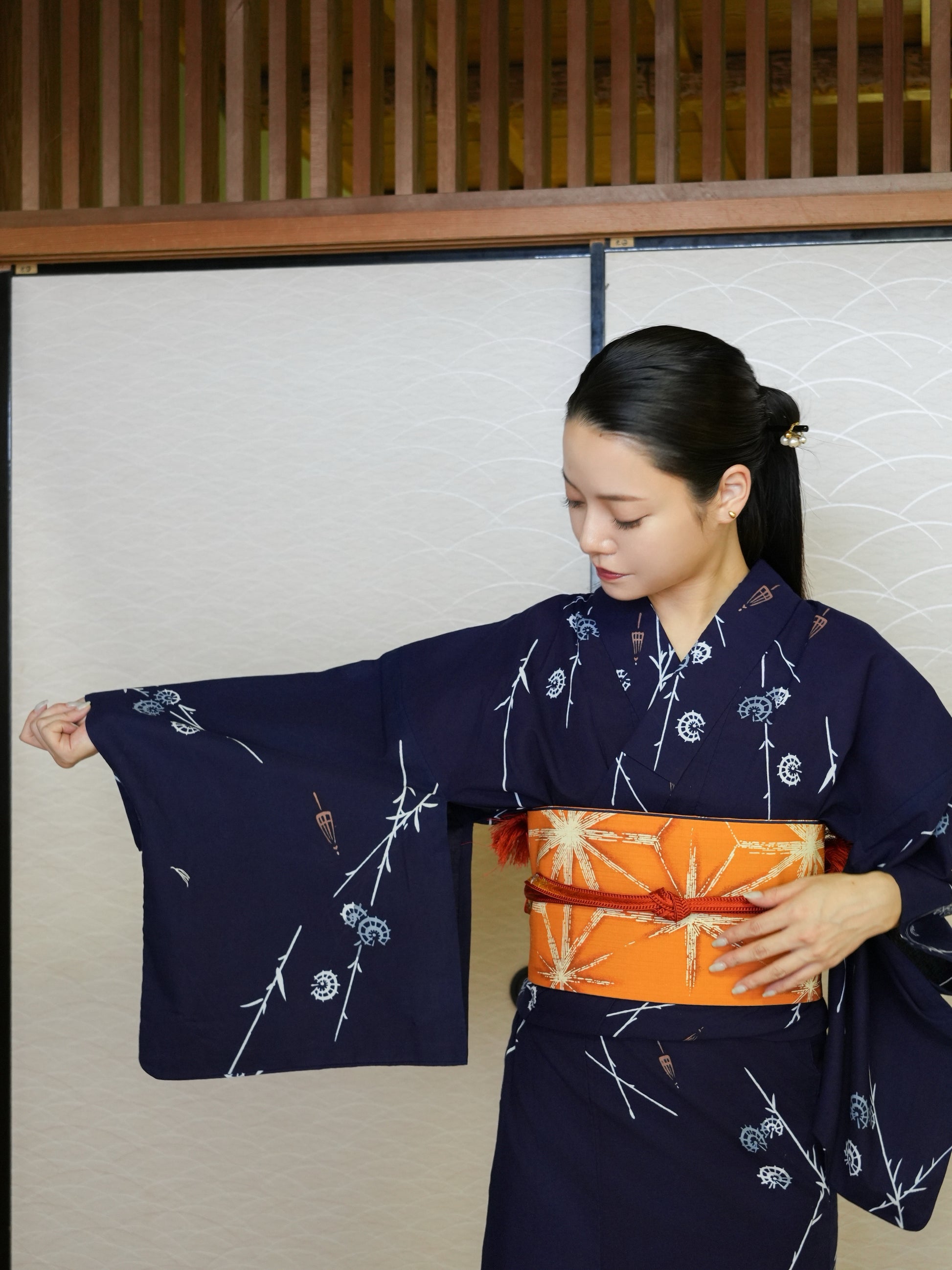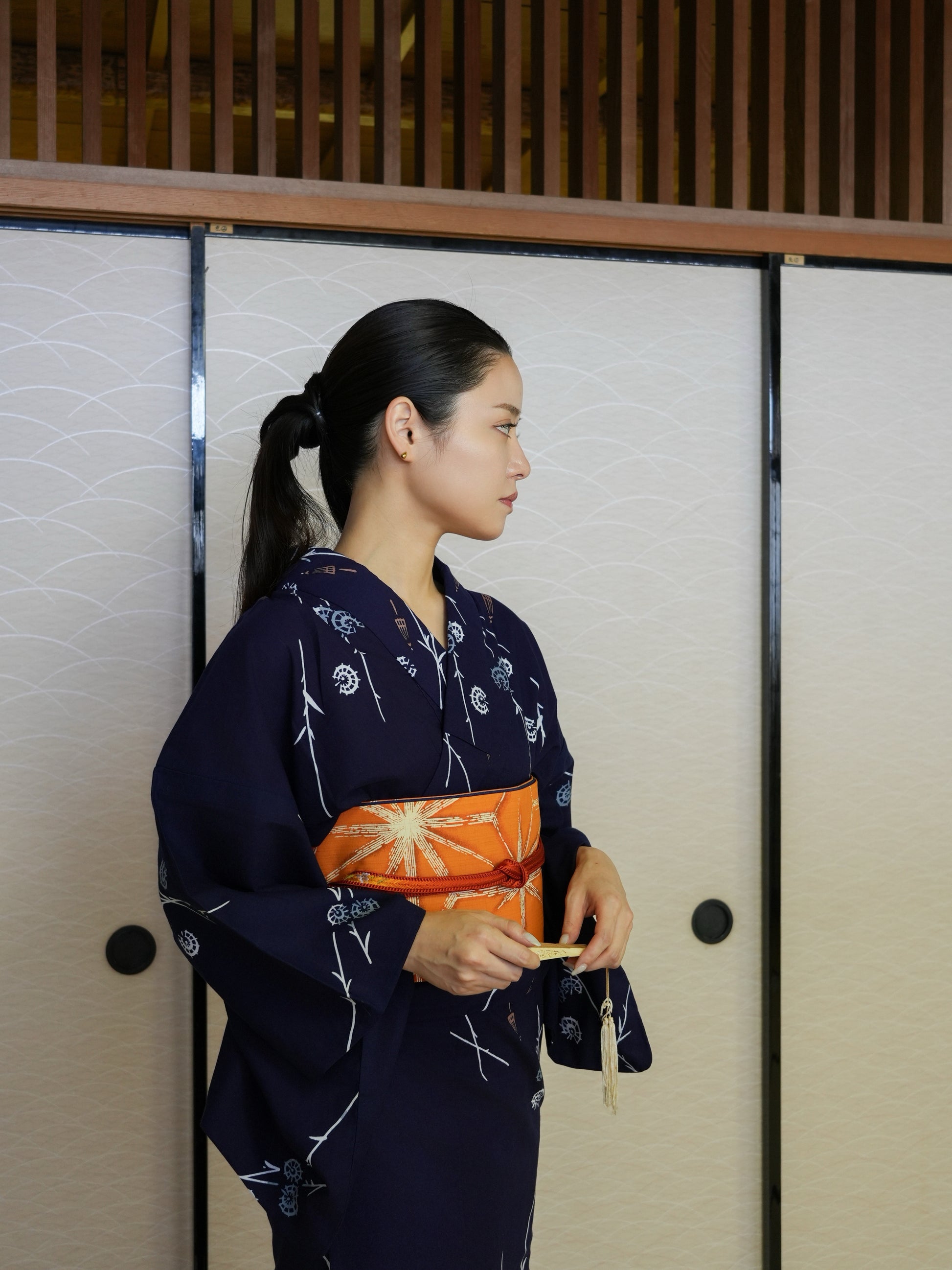 また、長襦袢を重ねることで、室内のイベントやよりフォーマルな和装シーンでも、浴衣から着物としてお楽しみいただけます。
